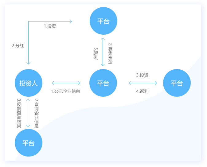 平臺(tái)應(yīng)用區(qū)塊鏈的去中心化機(jī)制,做成智能合約,上傳投資轉(zhuǎn)賬憑證及投資詳情,被投企業(yè)法人確認(rèn)。保證理財(cái)產(chǎn)品真實(shí)有效的投入到合法的企業(yè)中。如右圖所示: