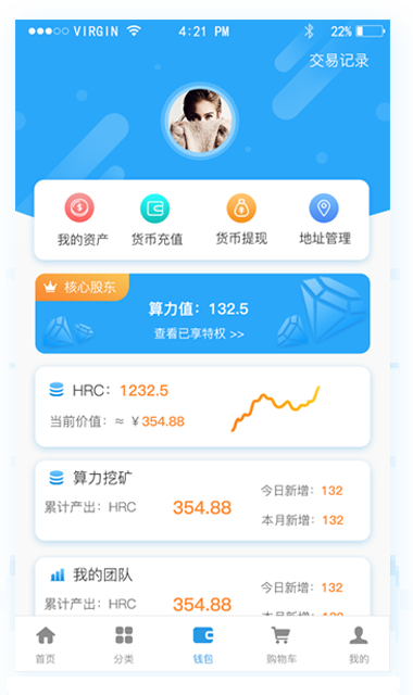 互融云數(shù)字貨幣電商系統(tǒng),是以商城為載體,結(jié)合區(qū)塊鏈分布式賬本、智能合約技術(shù)、以及數(shù)字貨幣支付的天然性,與傳統(tǒng)電商支付 場景完美融合,打造集 數(shù)幣購物、積分(代幣)發(fā)行、挖礦等功能于一身的區(qū)塊鏈電商系統(tǒng)。系統(tǒng)支持多種 數(shù)字貨幣支付,如比特幣、萊特幣、以太坊、泰達(dá)幣等主流幣,可結(jié)合互融云自主開發(fā)的強(qiáng)大的行情Api, 為用戶提供代幣精確市場信息,確保實(shí)時(shí)交易幣值。同時(shí)將傳統(tǒng)商城積分,與區(qū)塊鏈技術(shù)結(jié)合升級為購物挖礦、分銷挖礦、任務(wù)挖礦、 算力挖礦等多種方式盤活傳統(tǒng)積分,讓積分不再“雞肋”。