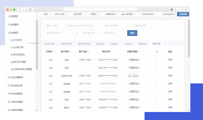 個(gè)性化定制線上財(cái)務(wù)報(bào)表功能,線上完成憑證、對(duì)賬及報(bào)表等工作,準(zhǔn)確核算每一筆貸款業(yè)務(wù)成本及收益,提高財(cái)務(wù)效率,節(jié)約人力成本。