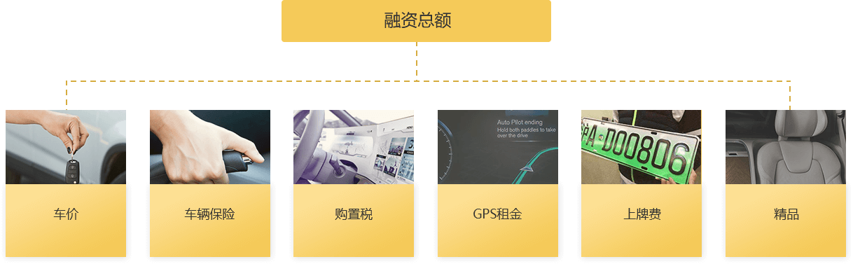 汽車融資業(yè)務(wù)除車價可以參與融資以外,還有車輛保險、購置稅、GPS租金、上牌費、精品等費用都可以選擇參融與否, 所有參融的費用和就是客戶最終的融資總額。
