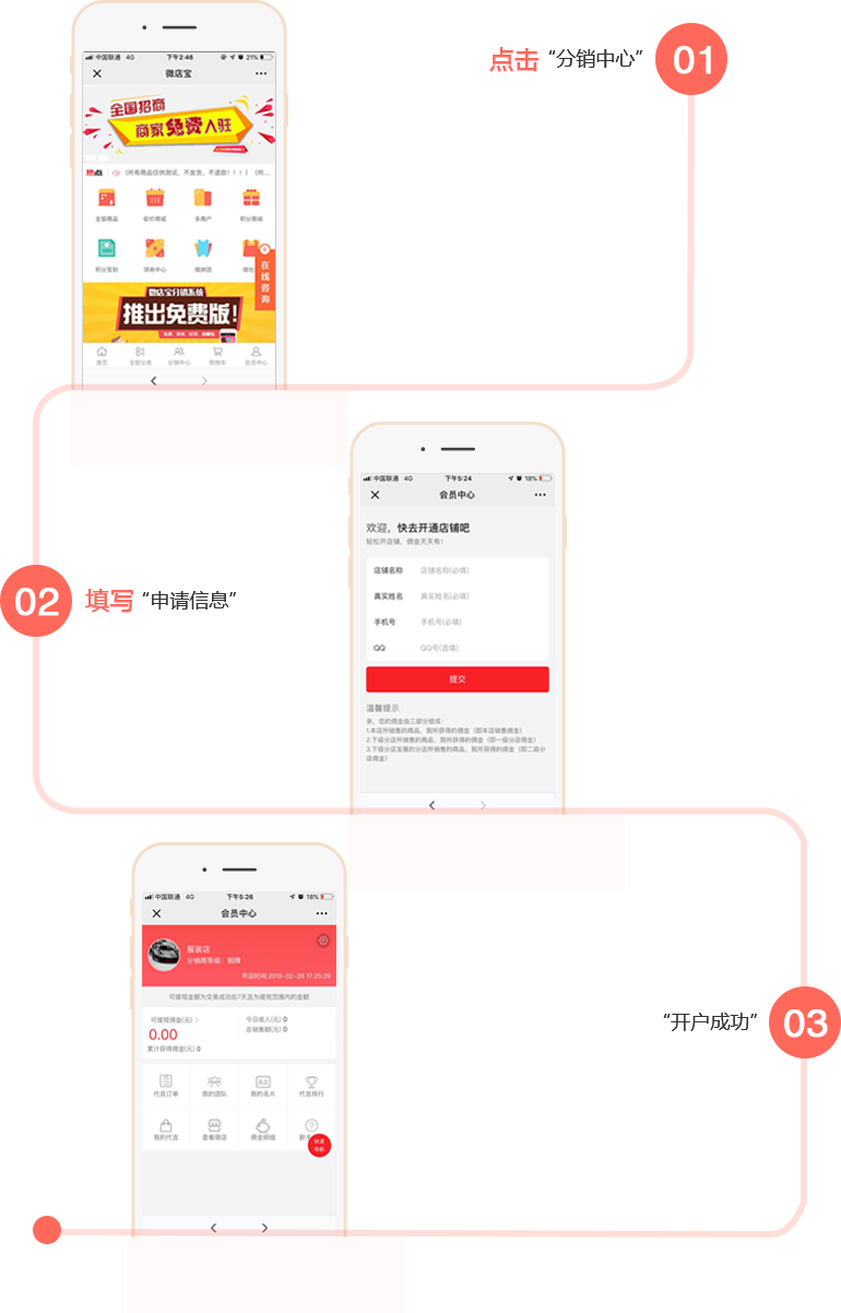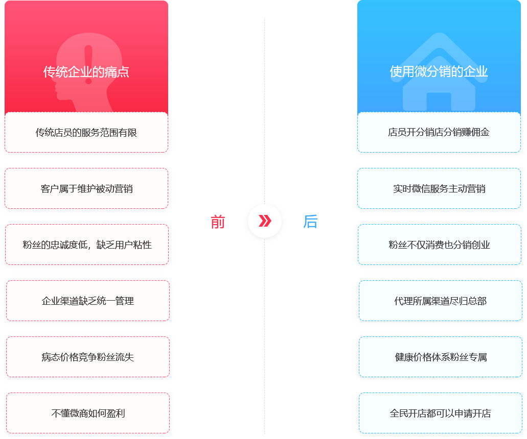 用戶最多可發(fā)展三級(jí)分銷(xiāo)、無(wú)限裂變、快速獲取用戶,統(tǒng)一銷(xiāo)售和管理