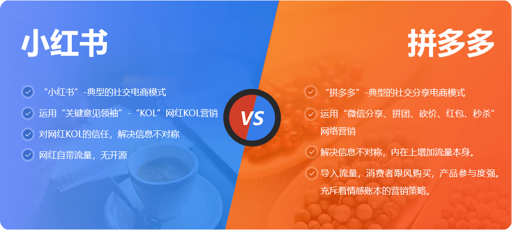 “拼多多“電商模式,通過(guò)”去中心化“,砍掉了流量購(gòu)買(mǎi)這一環(huán)節(jié),做一類(lèi)似Facebook式購(gòu)物平臺(tái), 注重賣(mài)家與買(mǎi)家之間的交流和溝通,每個(gè)人都是流量中心,主動(dòng)用戶和被動(dòng)用戶兩者各司其職:主動(dòng)用戶負(fù)責(zé)尋找商品, 開(kāi)團(tuán)后分享給朋友,而被動(dòng)用戶則在微信上看到主動(dòng)用戶發(fā)了鏈接看到物美價(jià)廉的產(chǎn)品,這種模式下, 用戶的參與感就很強(qiáng),基于熟人社交的電商模式,并充斥著情感賬本的營(yíng)銷(xiāo)策略。