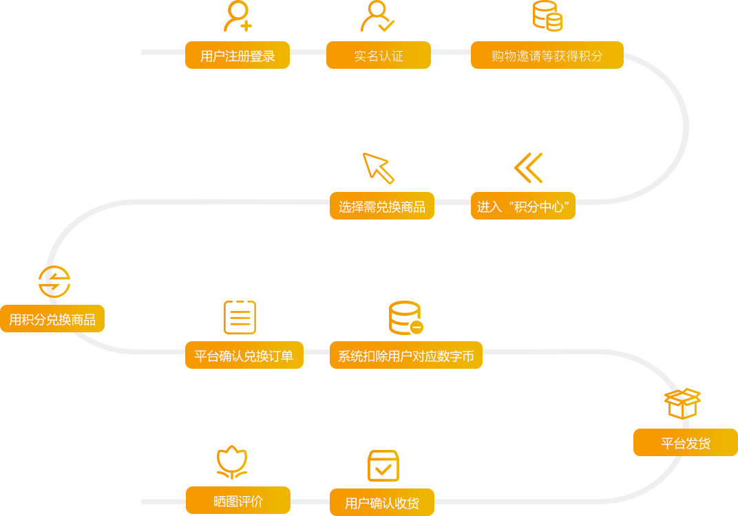 用戶在購(gòu)買商品的同時(shí),平臺(tái)會(huì)按照幣值(積分價(jià)值與人民幣的比率)返回給用戶對(duì)應(yīng)的積分返利。訂單完成后, 用戶即可使用積分,進(jìn)行商品競(jìng)拍、轉(zhuǎn)出、限時(shí)搶購(gòu)等活動(dòng)。