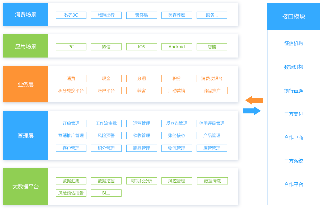 支持線上與線下結(jié)合的O2O模式,線上電商分期、線下實(shí)體門店分期