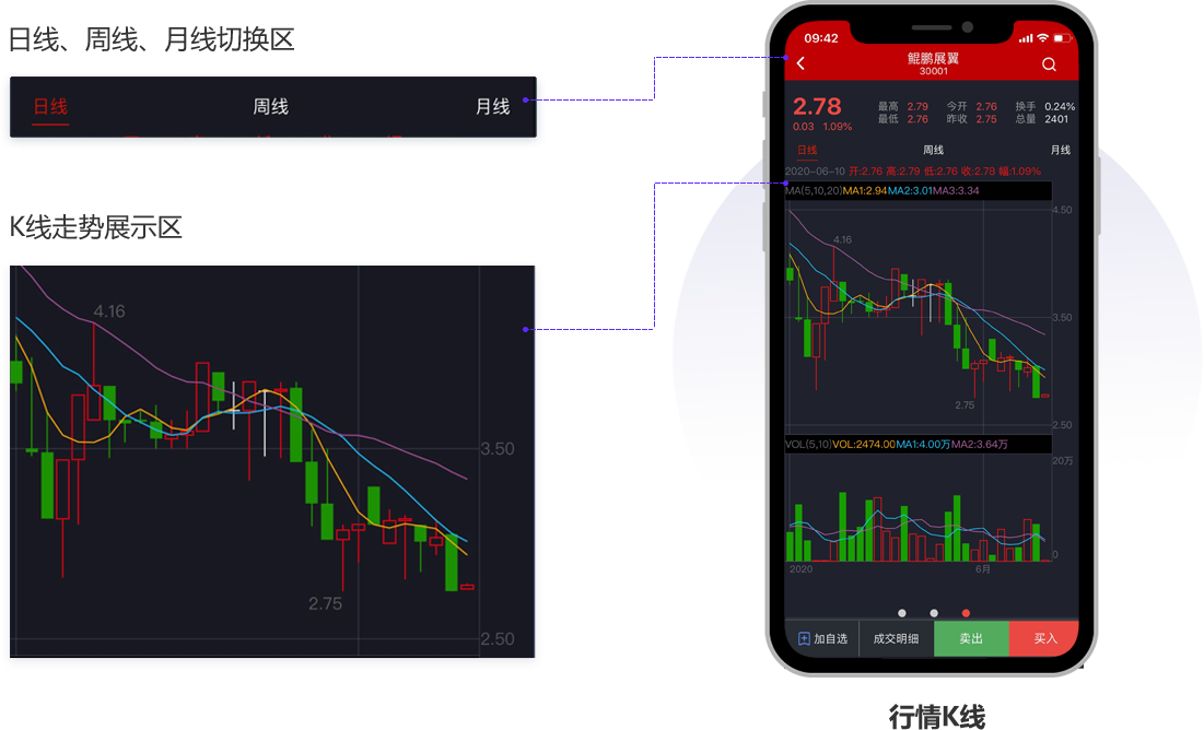 APP主要包含大盤行情、在線交易、自選、潮品K線、分時圖、包括限價/市價買賣。