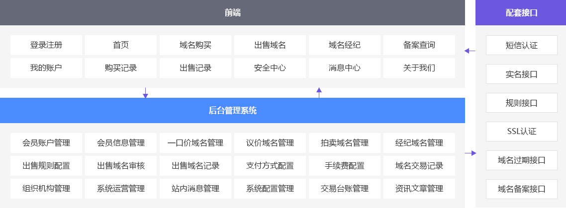 域名交易系統(tǒng)是在我司多年的金融+交易系統(tǒng)的穩(wěn)定框架基礎(chǔ)上, 結(jié)合目前市場形勢,針對域名資產(chǎn)交易困難的問題,研發(fā)的一款域名交易平臺。這是一款致力于讓域名買賣、 維護簡單便捷的交易系統(tǒng)。 該系統(tǒng)為用戶提供域名出售、購買、停放、備案查詢等一站式服務(wù),為您打造更新、更安全、更可靠的域名交易環(huán)境。