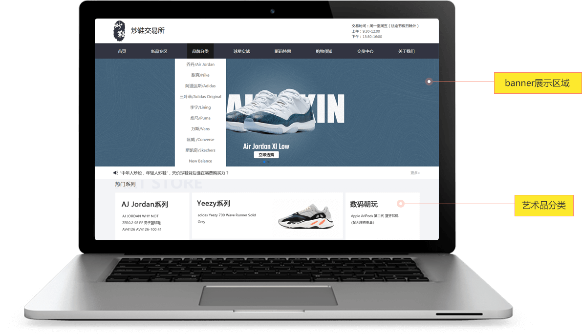 官網主要展示新品專區(qū)、品牌分類、球星實戰(zhàn)、斷碼特惠、會員中心等等