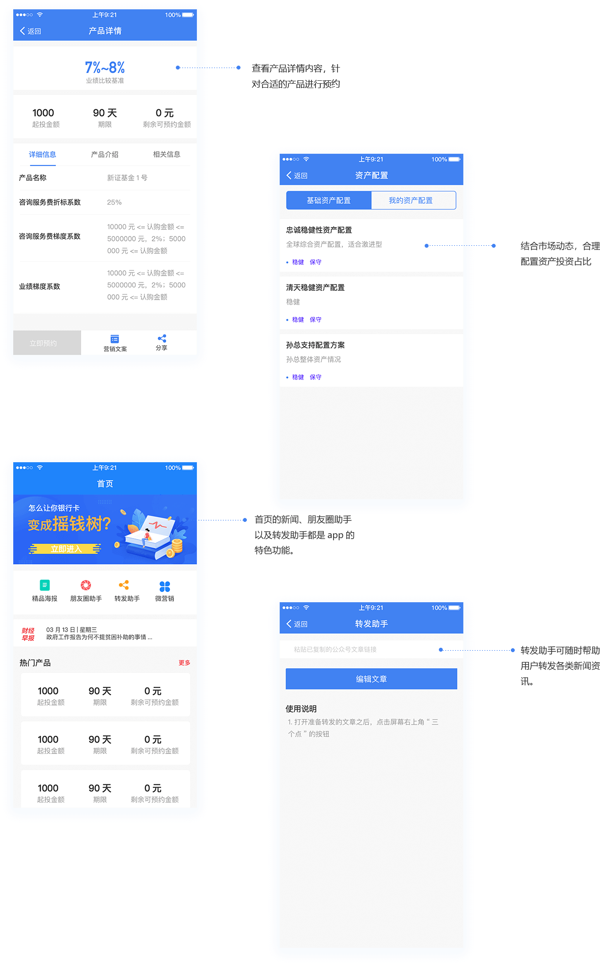 理財(cái)app和理財(cái)顧問(wèn)app是相互配合使用的產(chǎn)品,在理財(cái)顧問(wèn)上可以隨時(shí)配置線上的理財(cái)產(chǎn)品,這樣理財(cái)app的用戶可以隨時(shí)購(gòu)買投資產(chǎn)品。