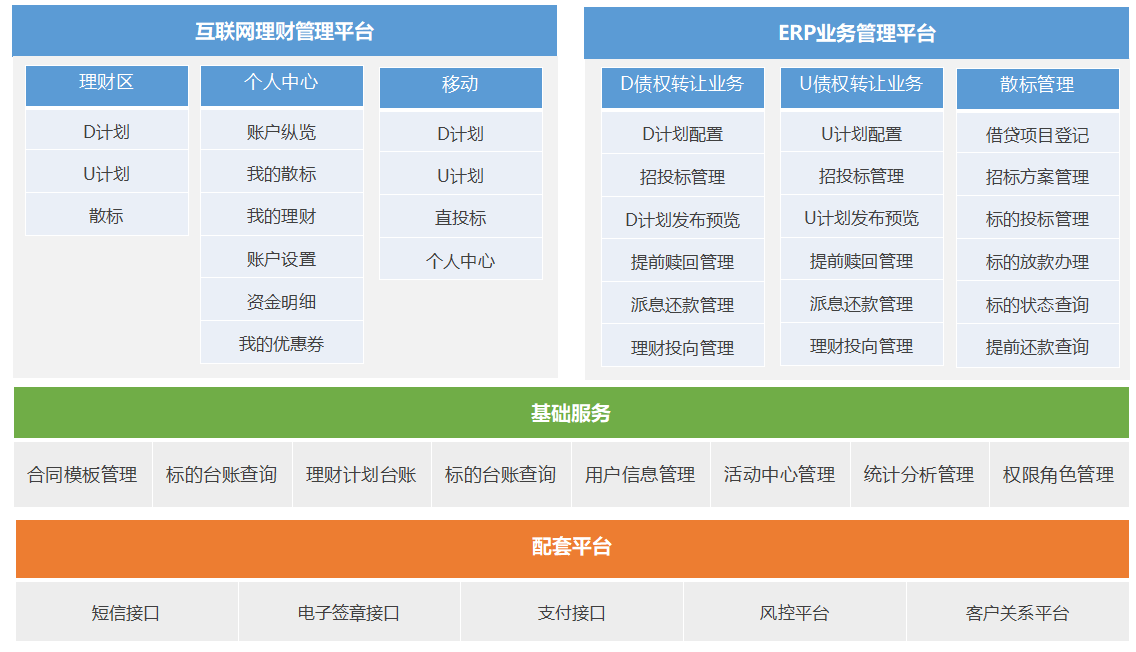 |  | 互聯(lián)網(wǎng)理財(cái)系統(tǒng)是依托于P2P網(wǎng)貸系統(tǒng),為滿足理財(cái)客戶對線上理財(cái)產(chǎn)品的多樣性需求而研發(fā)的新型理財(cái)系統(tǒng),分為D計(jì)劃、U計(jì)劃、散標(biāo)投資三大產(chǎn)品類型。 D計(jì)劃:投資人在網(wǎng)站購買此理財(cái)計(jì)劃,投資款將轉(zhuǎn)入收款專戶賬號中,平臺對理財(cái)訂單匹配線下債權(quán)庫的債權(quán),投資人可查閱債權(quán)清單,平臺定期派發(fā)收益。 U計(jì)劃:投資人在網(wǎng)站購買此理財(cái)計(jì)劃,投資款將轉(zhuǎn)入收款專戶賬號中,平臺對理財(cái)訂單匹配線上債權(quán)庫的債權(quán),投資人可查閱債權(quán)清單,平臺定期派發(fā)收益。 散標(biāo)投資:精選優(yōu)質(zhì)債權(quán),線上直接募集資金,借款人直接還款給投資人。 互融云團(tuán)隊(duì)在PC理財(cái)系統(tǒng)的基礎(chǔ)上配套研發(fā)了移動端理財(cái)系統(tǒng),涵蓋安卓、ios、微信端、手機(jī)wap。 互融云互聯(lián)網(wǎng)理財(cái)系統(tǒng)彌補(bǔ)了P2P網(wǎng)貸系統(tǒng)投資產(chǎn)品單一化的問題,滿足了投資人隨投隨取、多種產(chǎn)品、多種選擇、風(fēng)險更小、收益更多等貼心需求,讓平臺運(yùn)營起來的玩法更加多樣,為平臺在眾多競爭對手中脫穎而出助上一臂之力。 |