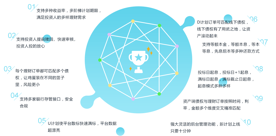 | 理財(cái)投向管理 | U計(jì)劃債權(quán)庫 | 展示所有線下債權(quán),更改債權(quán)到期時間 | |