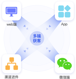 支持web端、APP、微信端、渠道端等多渠道獲客,改變傳統(tǒng)線下低效營銷獲客模式, 打破營銷閉環(huán),用戶多維度數(shù)據(jù)分析,用戶精準(zhǔn)畫像,實(shí)現(xiàn)信息化的精準(zhǔn)營銷,降本增效。