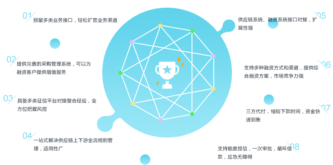 一站式解決供應(yīng)鏈上下游全流程的管理,適用性強(qiáng);支持多種融資方式和渠道,提供綜合融資方案,市場(chǎng)競(jìng)爭(zhēng)力強(qiáng)!