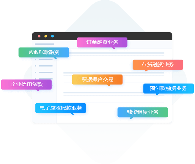 針對供應鏈多行業(yè)的特性,我們推出了不同場景下的業(yè)務系統(tǒng),除了開展應收賬款、訂單融資,存貨融資等相對傳統(tǒng)供應鏈融資業(yè)務之外,也可以通過升級開展票據(jù)撮合交易、預付款業(yè)務、企業(yè)信貸、電子應收賬款業(yè)務、融資租賃等多種業(yè)務,通過組合的業(yè)務模式,更大化的滿足客戶的需要