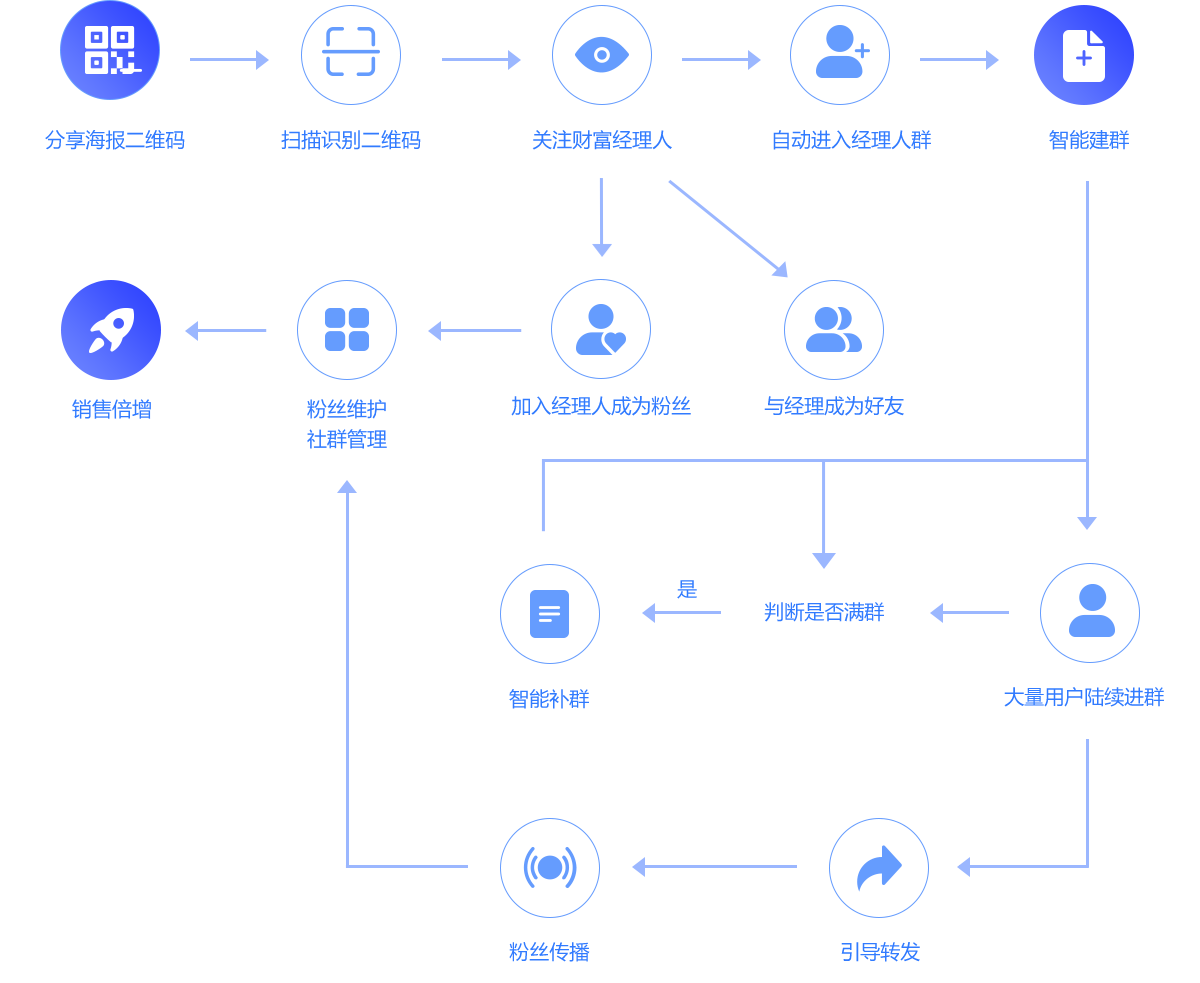 互融云積累多年實(shí)施財(cái)富管理、投資客戶關(guān)系管理系統(tǒng)的基礎(chǔ)上,秉承推陳出新理念大膽創(chuàng)新的將投資客戶關(guān)系+社交+社群的模式結(jié)合在一起,研發(fā)出一款投資/財(cái)富客戶社群社交系統(tǒng),此系統(tǒng)是建立在社區(qū)、社群、粉絲基礎(chǔ)上的,并結(jié)合財(cái)富產(chǎn)品、投資客戶關(guān)系維護(hù)的業(yè)務(wù)模式,開發(fā)的一款集社交、社群的財(cái)富社群系統(tǒng)。我們將社交周邊進(jìn)行了整合,不僅支持好友聊天、資訊、圈子、社區(qū)朋友圈、問答、排行榜、音樂FM、話題、找人等功能,將我們投資客戶更好的維系在社群中,更推出了適合財(cái)富的財(cái)富學(xué)院板塊,使財(cái)富經(jīng)理人更多的通過線上傳播財(cái)富的理念,內(nèi)容更豐富有知識(shí)含量,幫助類財(cái)富投資企業(yè)開展社群營銷模式,裂變推廣拉新促活,開啟社群經(jīng)濟(jì)紅利時(shí)代。
