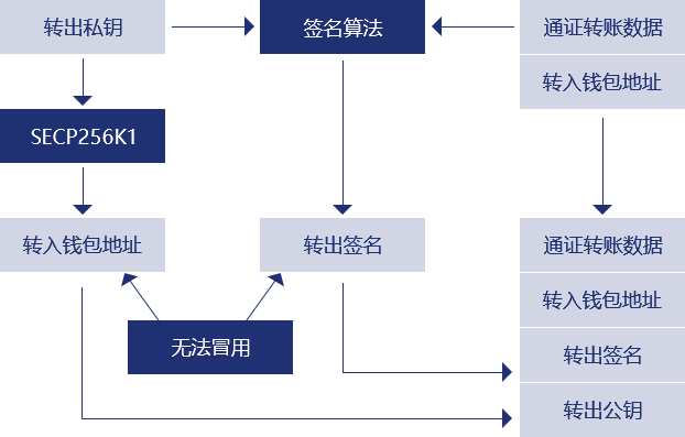 類似轉賬支票,轉出公鑰就是出票人賬號,轉入錢包地址就是收款人,而簽名就是出票人簽章!由此保障線上數(shù)據(jù)不被替換、冒用。(左圖)