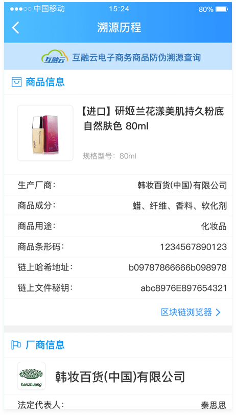 溯源信息上鏈,具有與區(qū)塊鏈相同性質(zhì),公正公開不可篡改